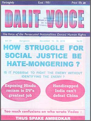 I am very happy to note that barring one or two, the unanimous opinion is that Dalit Voice is the best Ambedkarite journal the country is able to get and that the credit is given to Editor V.T. Rajshekar for giving to the country such a journal. And also brining it out continuously for 30 long years, without missing a single issue